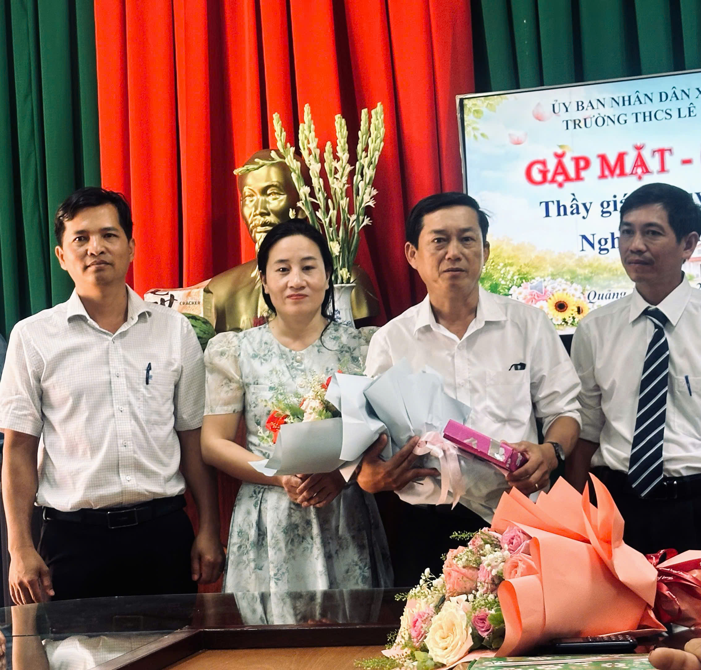 Lãnh đạo nhà trường tặng hoa chúc mừng thầy giáo Nguyễn Bá Thuận