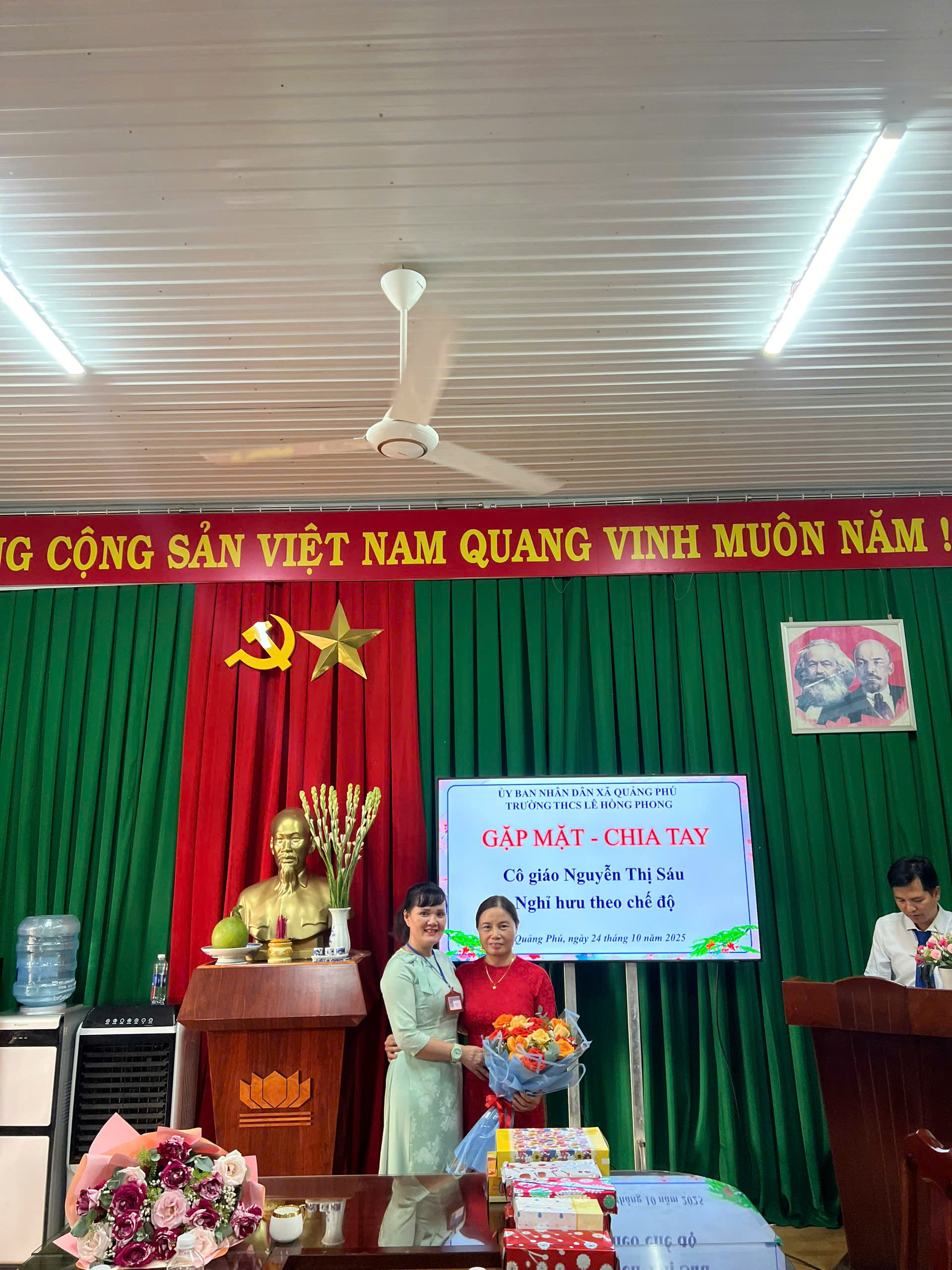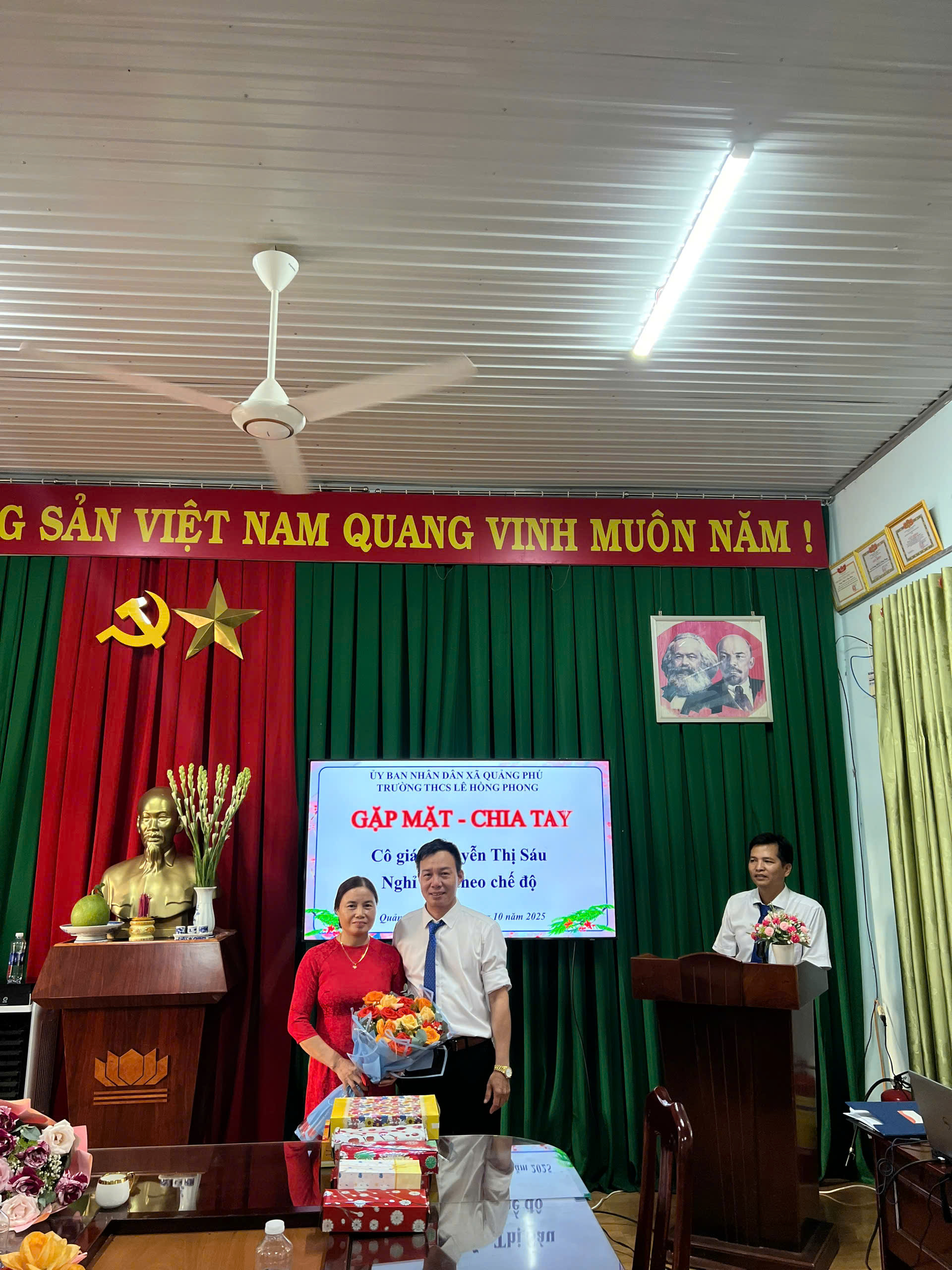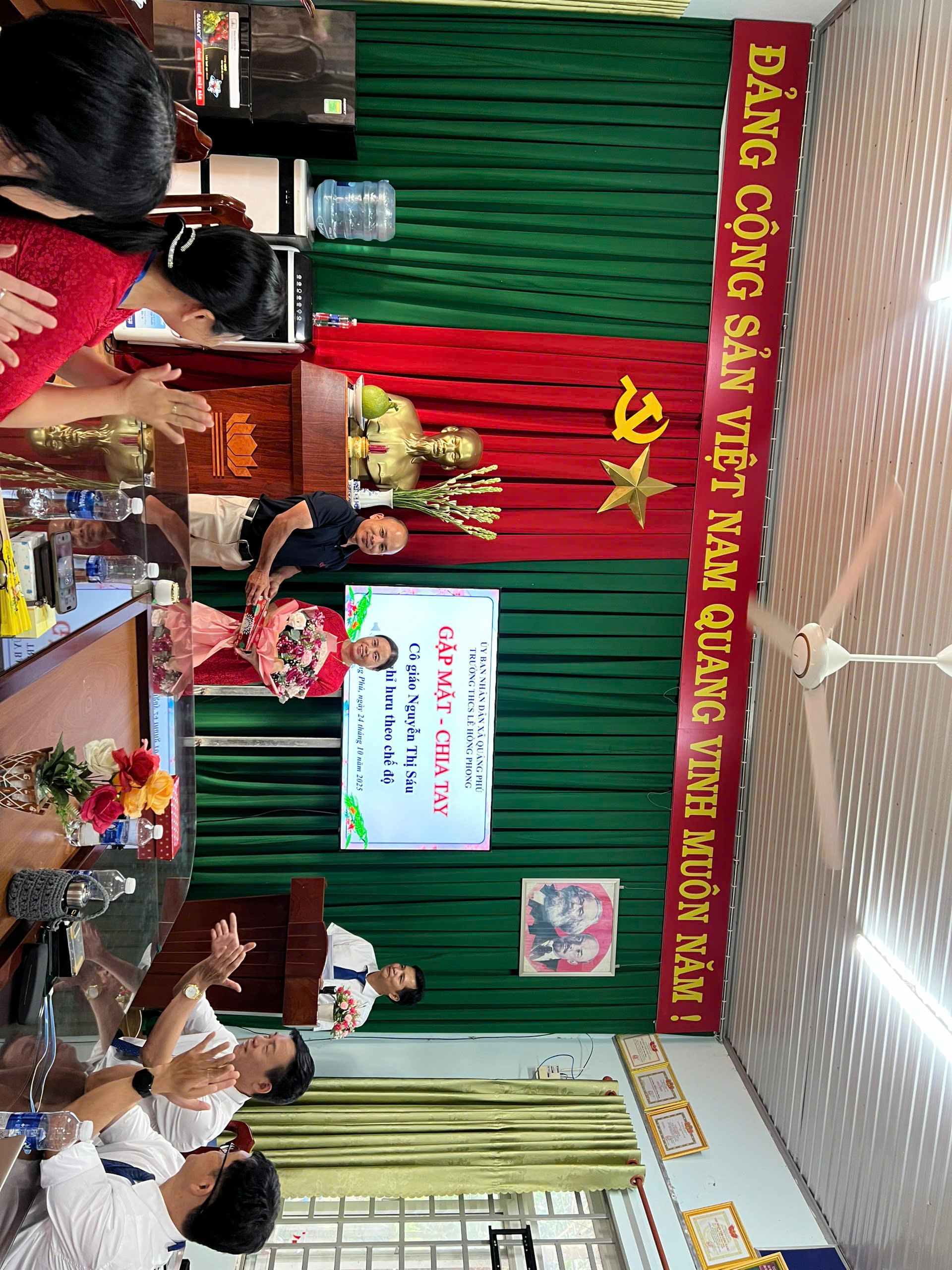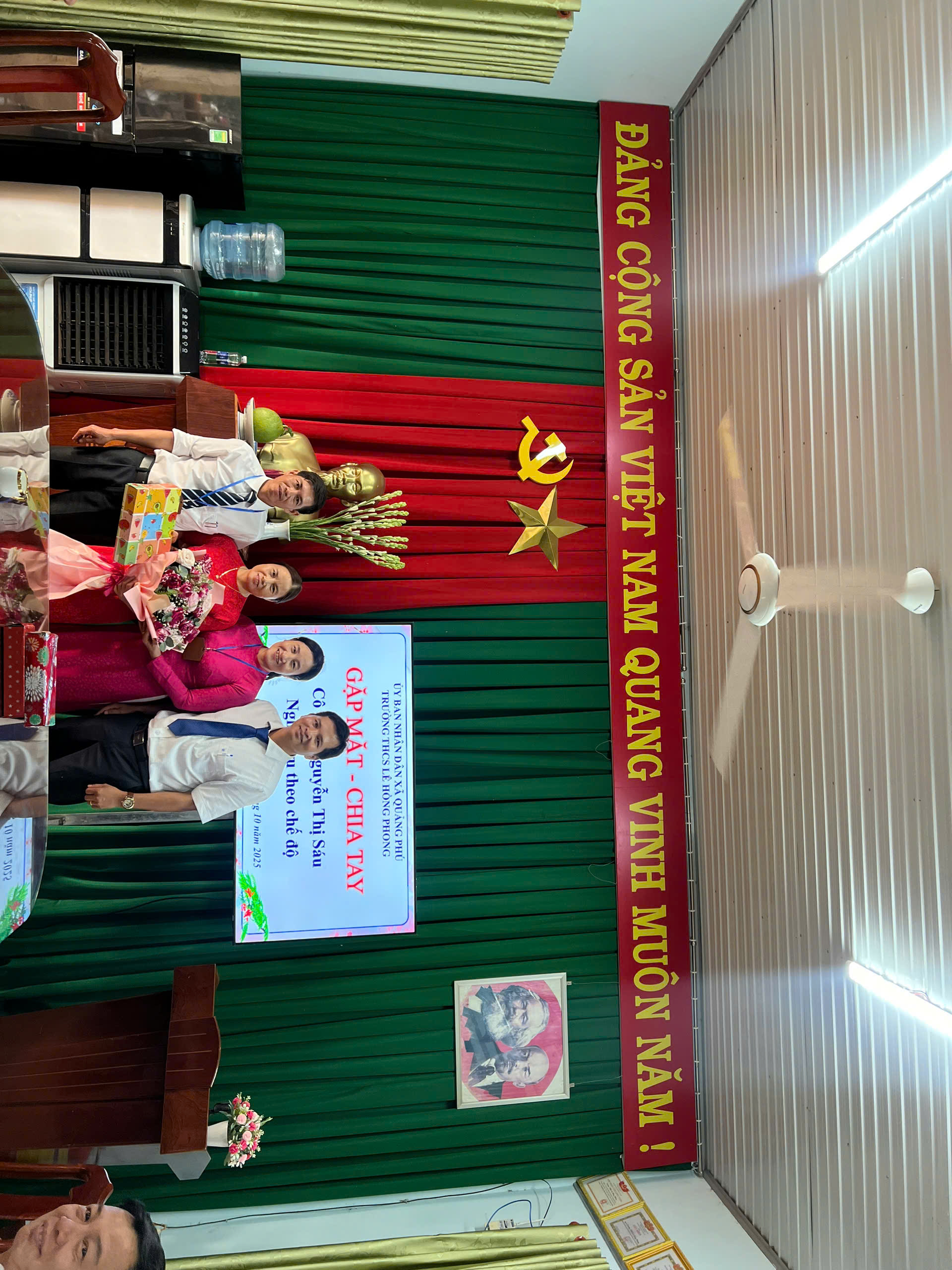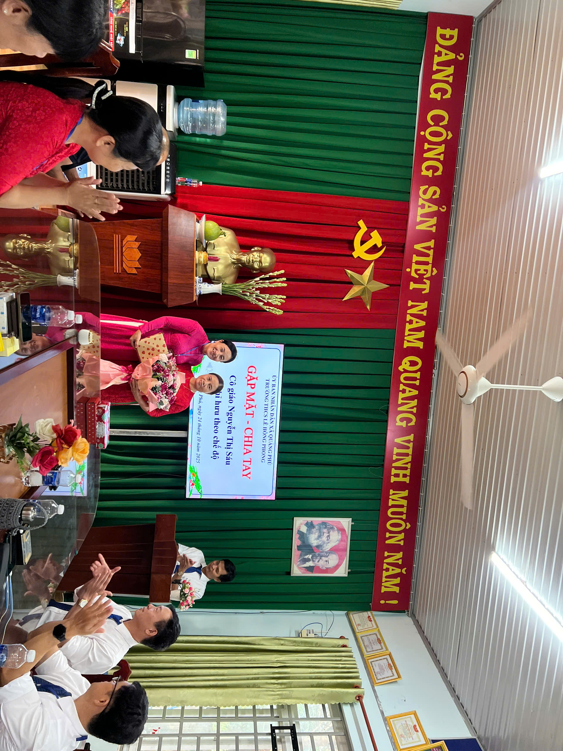 Thay mặt nhà trường, phụ huynh học sinh và học sinh các thế hệ trong nhà trường, xin kính chúc cô Nguyễn Thị Sáu về nghỉ hưu an nhàn, tràn đầy sức khỏe – Gia đình hạnh phúc.