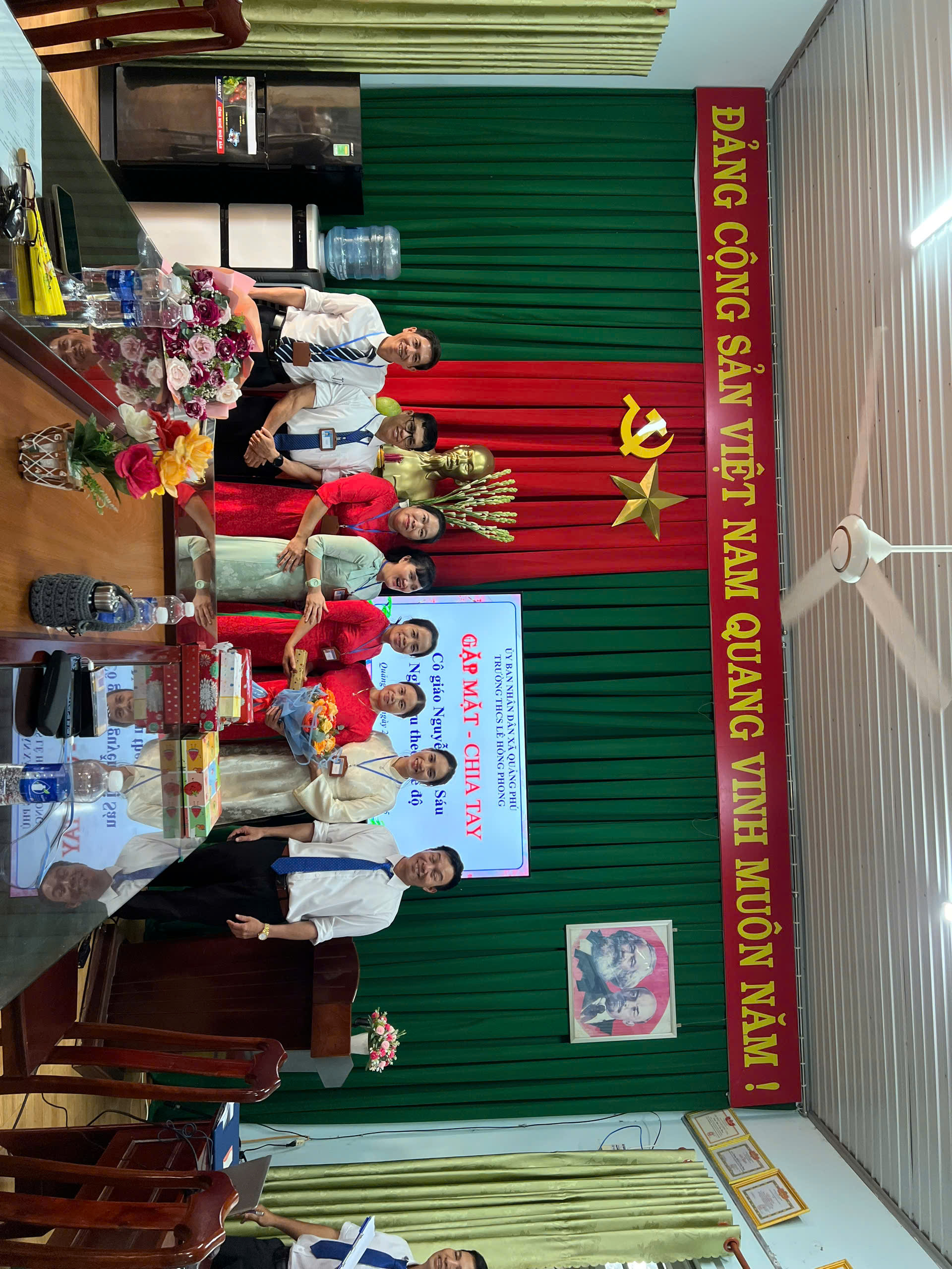 Để ghi nhận những công lao của cô, chi bộ, nhà trường, cũng như các tổ chuyên môn, tổ văn phòng cũng có những lẵng hoa tươi thắm tri ân sâu sắc đến cô Nguyễn Thị Sáu.