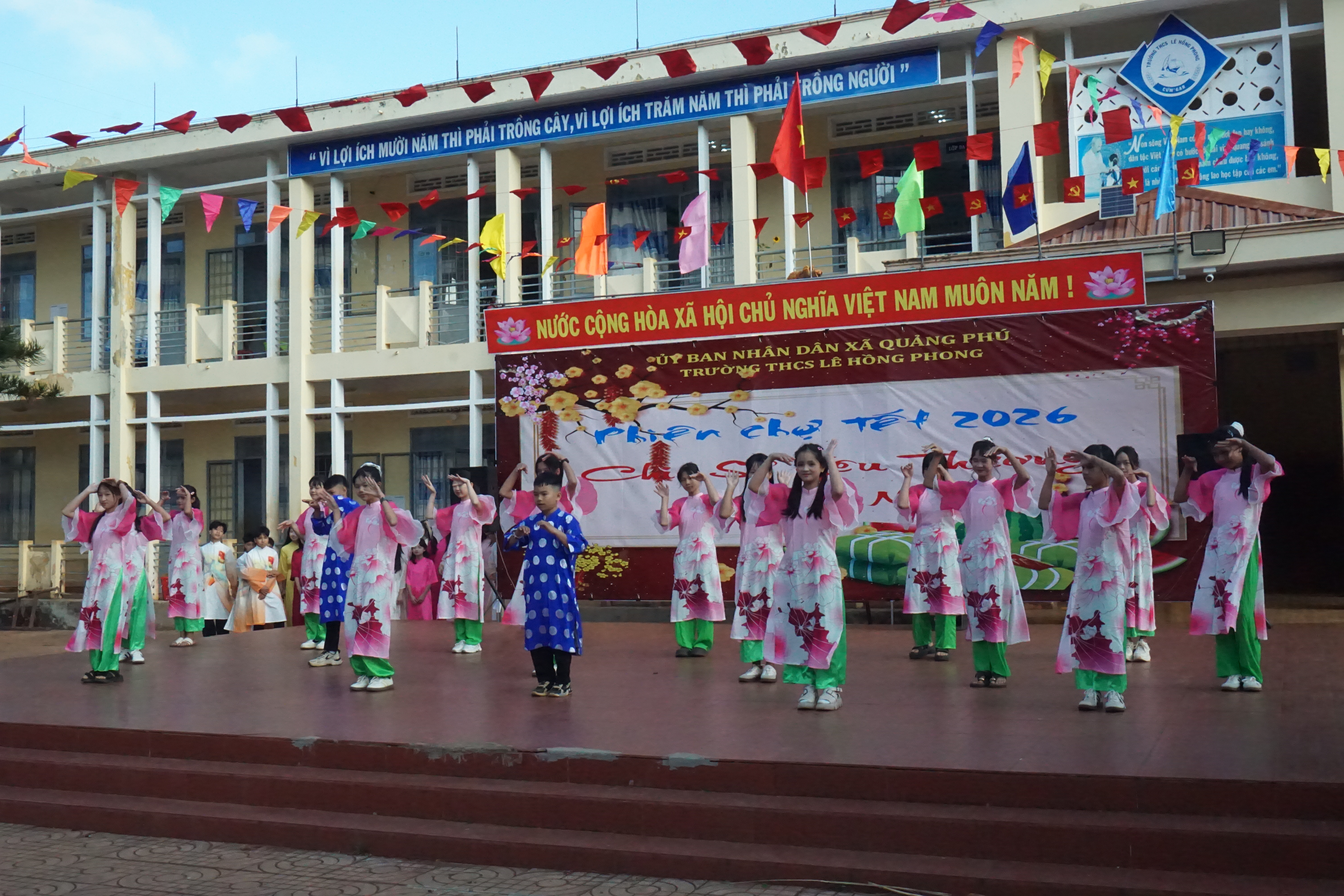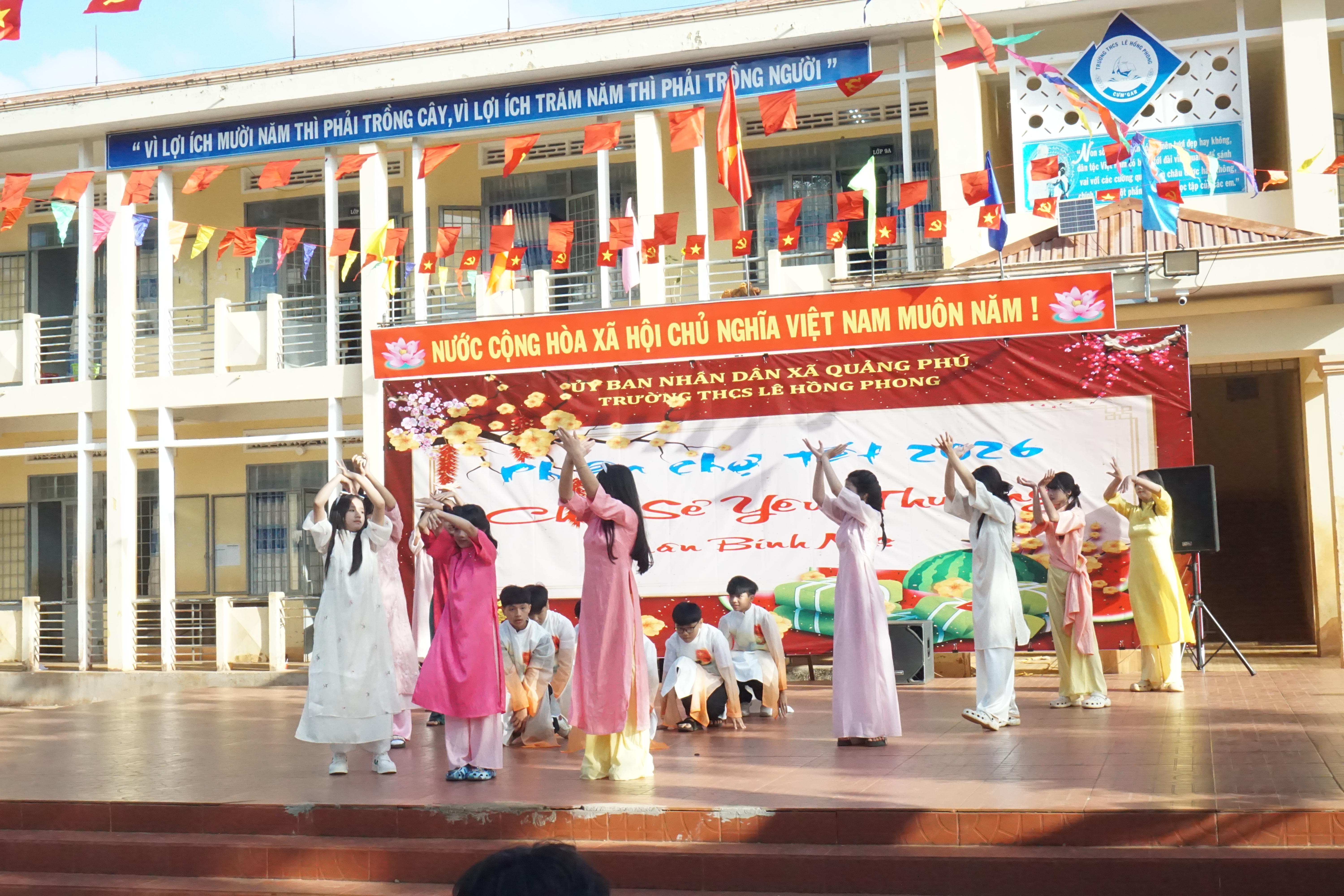 Hội Xuân 2026 với chủ đề “Phiên chợ Tết – Chia sẻ yêu thương” đã khép lại trong niềm vui và sự xúc động, để lại nhiều ấn tượng tốt đẹp trong lòng thầy cô, phụ huynh và học sinh Trường THCS Lê Hồng Phong. Chương trình không chỉ mang đến sắc Xuân rộn ràng mà còn lan tỏa những giá trị nhân văn cao đẹp, góp phần giáo dục toàn diện cho học sinh – đúng với tinh thần “mỗi ngày đến trường là một ngày vui”.